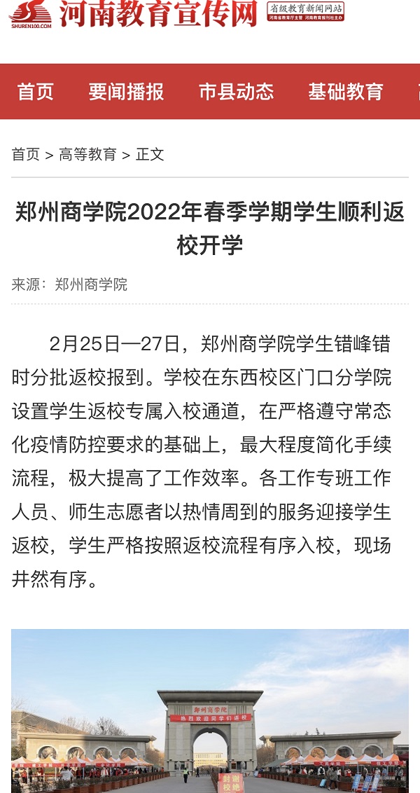 2月28日,河南教育宣传网以“999策略白菜手机论坛2022年春季学期学生顺利返校开学”为题,报道我校2022年春季学期学生返校开学。现将原文摘录如下: