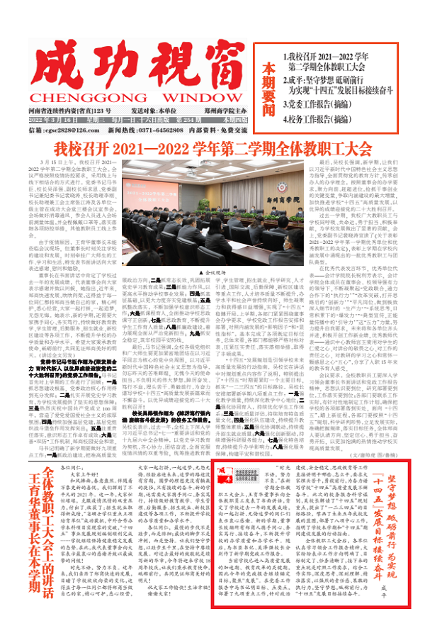 (来源:校报《成功视窗》 2022年03月16日 第254期)