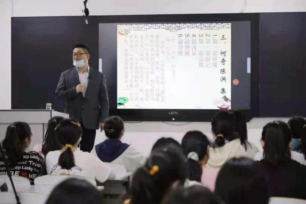 为推进书香育人环境建设,营造校园文化良好氛围,促进我院书香可持续性发展。4月22日晚,文传学院联合图书馆开展“郑商百家谈”系列活动第十一讲。本期活动采用线下线上相结合模式,再次邀请文传学院贾海涛老师担任主讲,带领同学们走进四大名著之《西游记》。