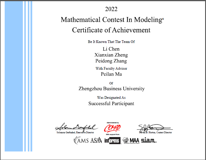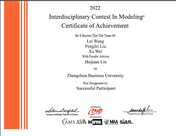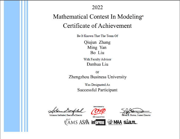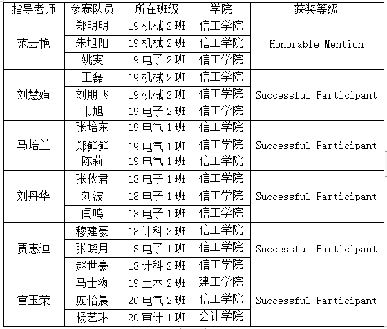 本次比赛学校领导高度重视,成立了专门的竞赛工作领导小组,各部门之间通力合作,通识中心精心组织,多次邀请有关专家进行指导培训。同时,参赛师生积极备战,通过选题、资料查找、分析计算、英文写作等环节圆满完成参赛任务,高质量提交竞赛论文,最终取得优异成绩。