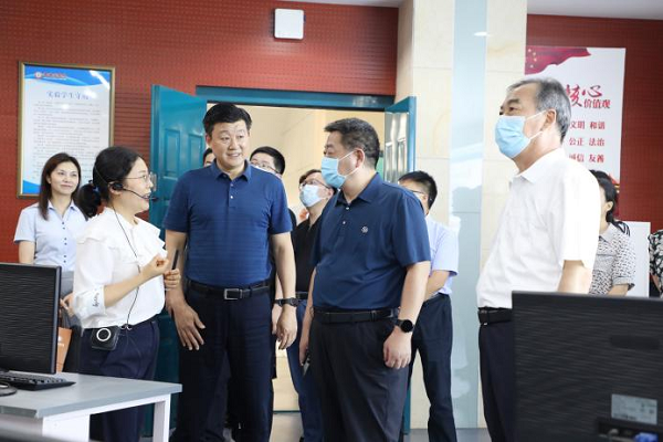 8月14日,省教育厅高教处处长、一级调研员张水潮带领副处长、三级调研员季双丽、张小茜等一行10人莅临我校调研指导工作。校党委书记马书臣、校长吴泽强带领全体校领导班子和相关职能部门主管、部分二级学院院长陪同调研。