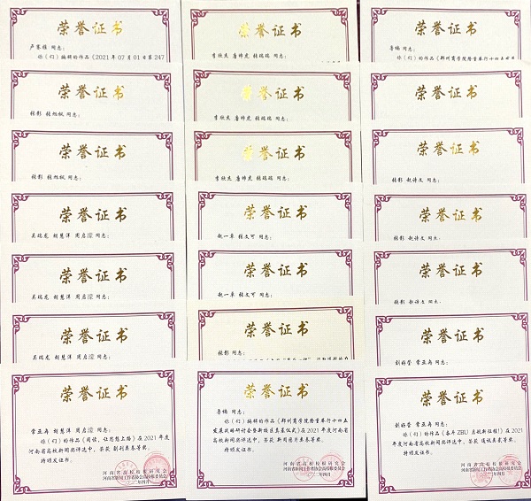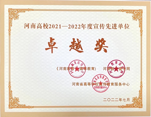 近日,河南省教育新闻中心公布河南高校2021-2022年度宣传先进单位、优秀通讯员、优秀新闻作品评选结果。我校荣获“河南省2021-2022年度宣传先进单位卓越奖”,选送的新闻作品《暴雨无情,郑商有爱!——我校有序安置K206次列车千余人滞留巩义旅客》(作者:张影、唐帅虎、李欣杰)荣获“河南高校2021-2022年度优秀新闻作品一等奖”,新闻作品《“凝心聚力谋发展 继往开来续新篇——我校隆重举行十四五发展战略研讨会暨新校区奠基仪式》(作者:唐帅虎、张勤英、鲁楠)荣获“河南高校2021-2022年度优秀新闻作品二等奖”,宣传部(新闻中心)李欣杰同仁被评为“河南高校2021-2022年度优秀通讯员”。