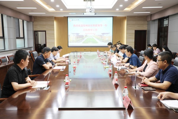 8月24日,郑州市社科联党组成员、副主席、社科院副院长许颖杰,党组成员、副主席秦贤卿,普及工作部部长余晓梦、学会部部长杨发聚一行4人莅临我校调研指导工作。校长吴泽强、校长助理兼工会主席张江涛及相关部门主管、部分二级学院院长和我校哲学社会科学研究基地校内负责人陪同调研。