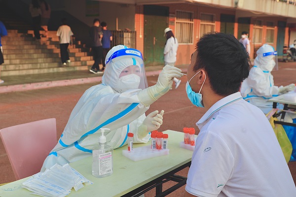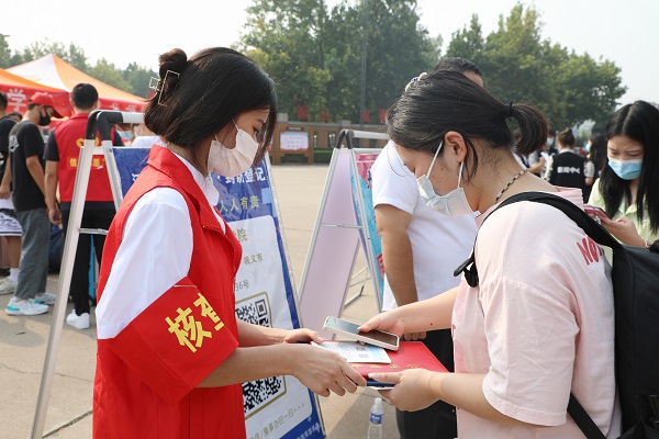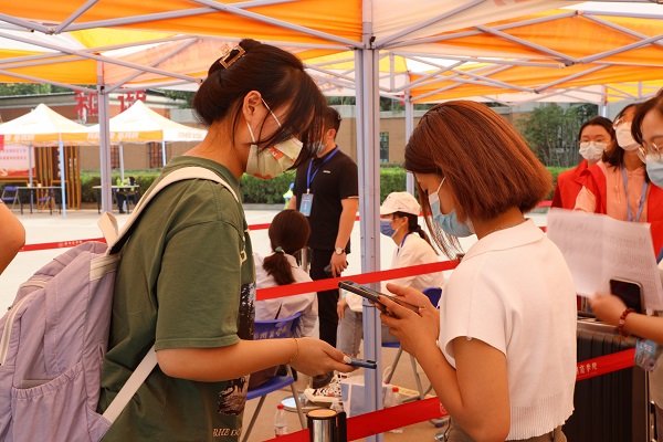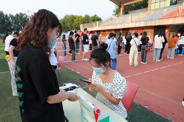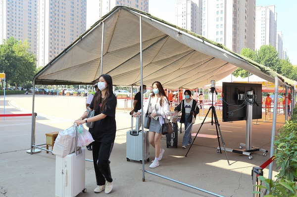 为筑牢校园安全防线,新同学们入校后立即进行核酸检测,实施7天健康监测。