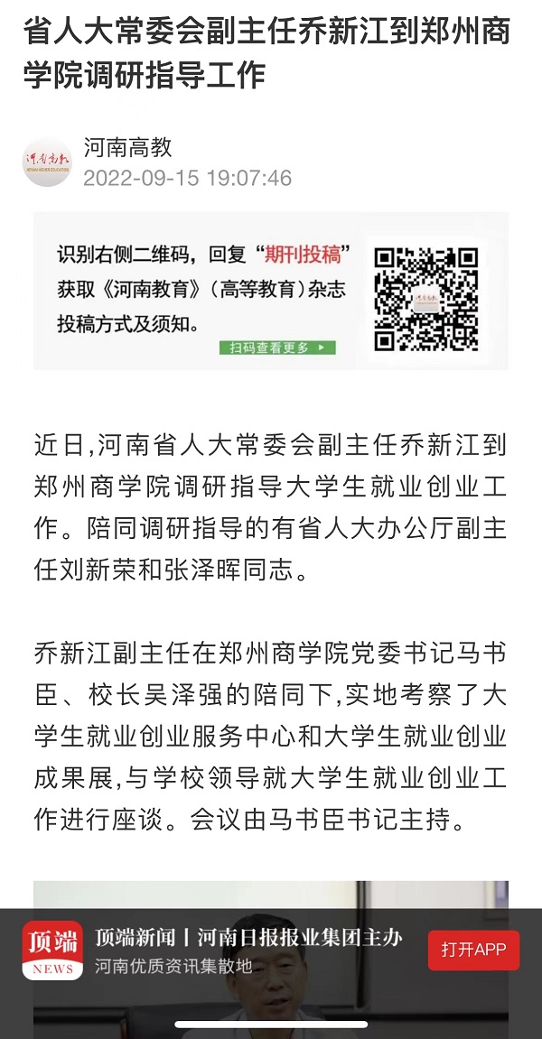 近日,河南省人大常委会副主任乔新江到999策略白菜手机论坛调研指导大学生就业创业工作。陪同调研指导的有省人大办公厅副主任刘新荣和张泽晖同志。