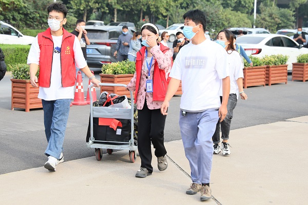 校内外随处可见志愿者们争先为新生搬运行李、指引报到、引导入宿、熟悉环境、解答疑惑的情景,气氛十分热闹。