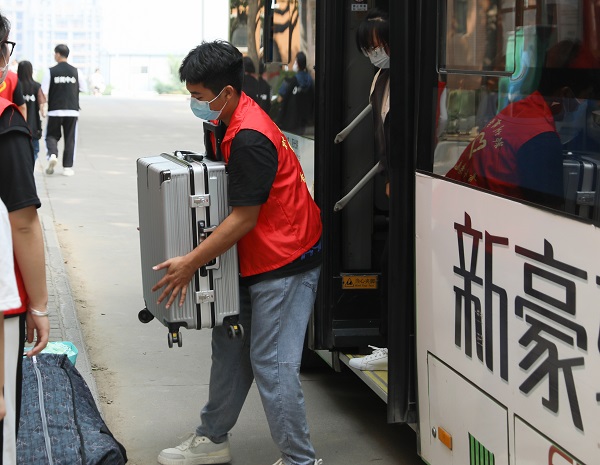 学校在高铁站、火车站设立了新生接待处,按不同时段需求,派发迎新专线,接送报到新生;校内摆渡车全天候不间断派发,打通入学报到的“最后一公里”。