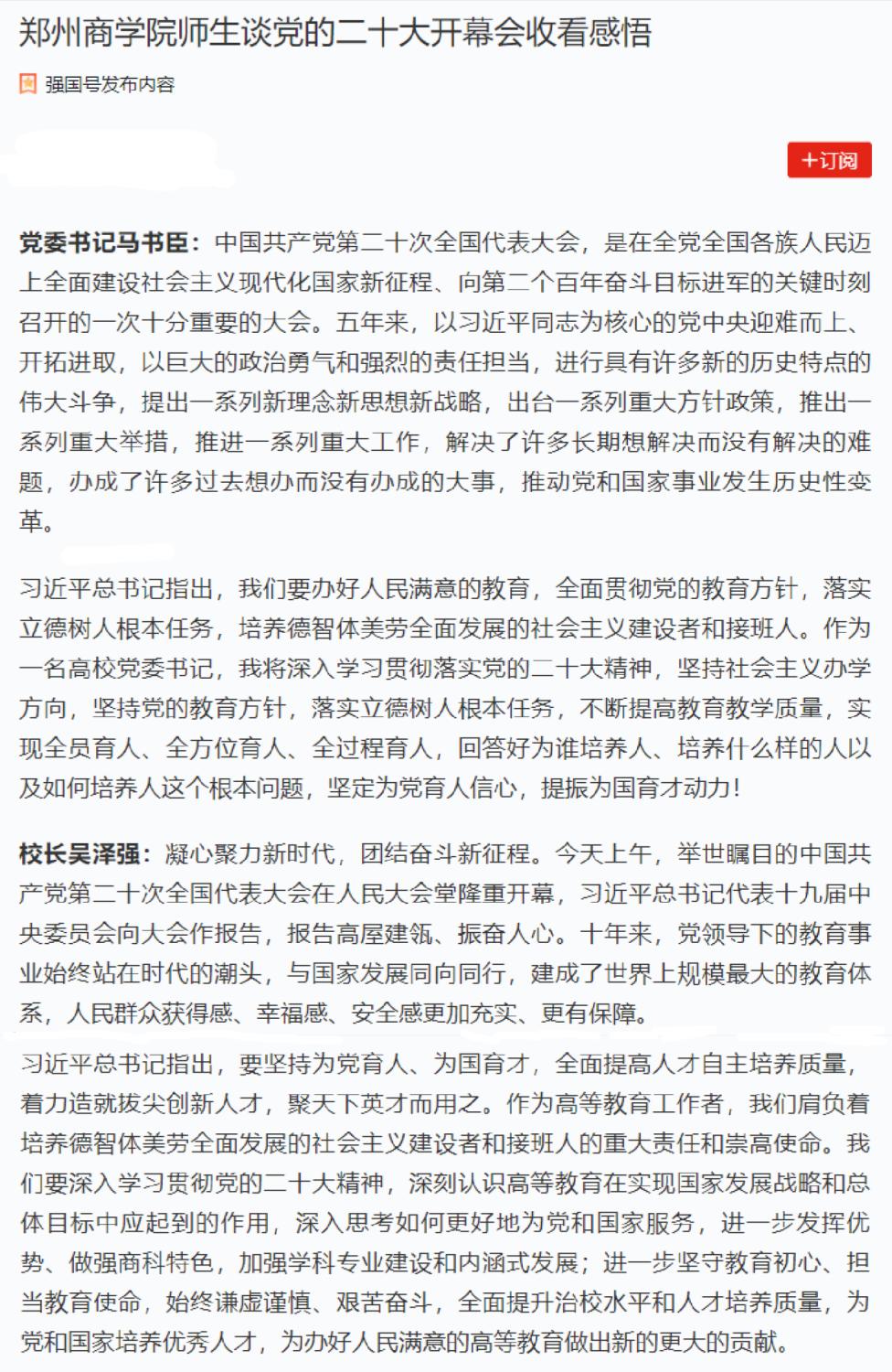 10月19日,学习强国以“999策略白菜手机论坛师生谈党的二十大开幕会收看感悟”为题,报道我校师生学习党的二十大报告感悟。现将原文摘录如下: