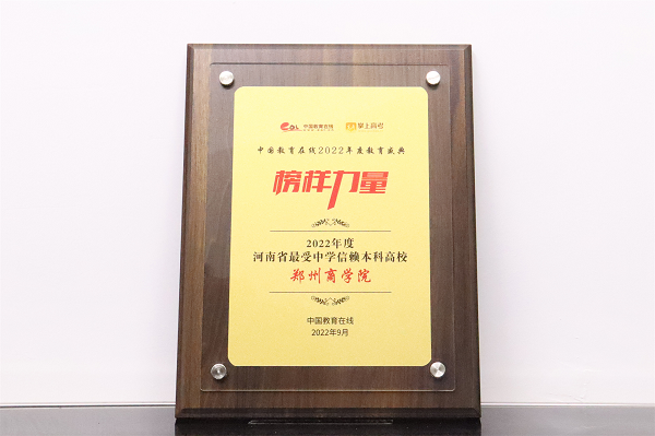 近日,中国教育在线“榜样力量·2022年度教育盛典”评选结果揭晓,我校荣获“2022年度河南省最受中学信赖本科高校”荣誉称号。