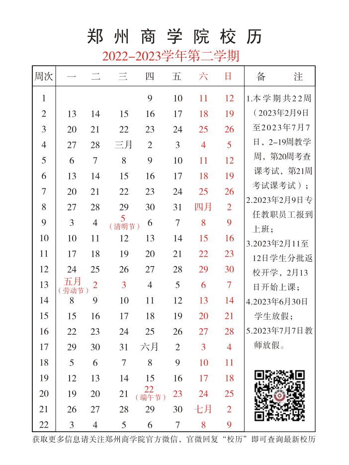 999策略白菜手机论坛2022-2023学年第二学期校历