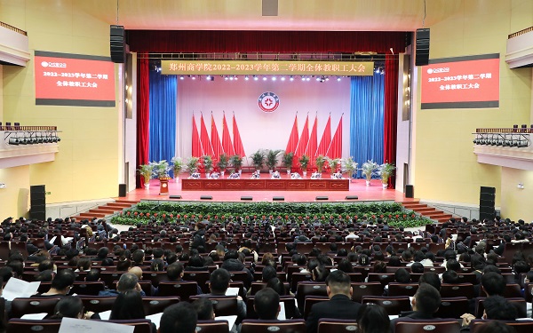 乘势而上开新局,聚势谋远再出发。为全面总结上学期工作经验与成效,谋划部署新学期重点任务,推动各项工作高效有序开展,2月16日上午,我校在成功大会堂隆重召开2022—2023学年第二学期全体教职工大会。董事长王育华、党委书记马书臣、校长吴泽强、党委副书记兼纪委书记裴晓涛、校长助理兼工会主席张江涛、校长助理刘升阳出席会议。全体主管、科长、无课教师、辅导员等教职员工参加会议。
