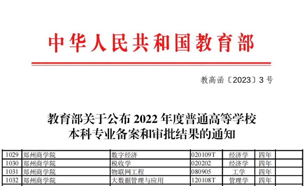 近日,教育部公布了2022年度普通高等学校本科专业备案和审批结果,我校申报的数字经济、税收学、物联网工程、大数据管理与应用4个本科专业成功获批。