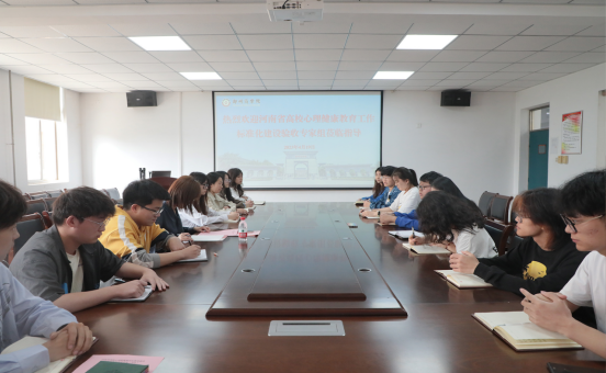 4月19日,由河南师范大学原党委书记、中国心理学会理事长赵国祥为组长的河南省普通高等学校心理健康教育工作标准化建设验收专家组一行,莅临我校检查指导工作。学校在行政楼第一会议室召开汇报会,校长吴泽强、党委副书记兼纪委书记裴晓涛及相关部门负责人参加汇报会,会议由学务处处长路程主持。