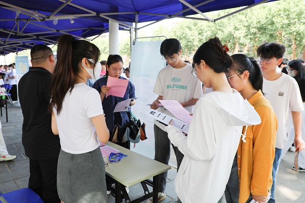 专场招聘会现场氛围热烈,学生认真了解企业资料,听工作人员宣讲。