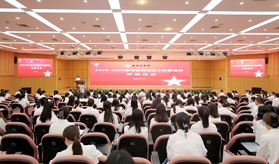 开班仪式在雄壮的国歌声中拉开序幕。校长吴泽强为新聘教职工代表赠送《习近平总书记教育重要论述讲义》等书籍;教师发展中心副主任季艺带领全体新聘教职工庄严宣誓;金贸学院刘恒老师作为新聘教职工代表进行表态发言;主持人介绍《2023-2024学年新聘教职工岗前培训须知及日程安排》。