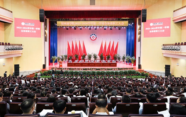 为落实教育强国、教育强省建设战略部署和要求,回顾总结上学期工作成效,科学研判新时期高等教育发展形势,谋划部署本学年工作任务,全面推进学校高质量发展,9月14日上午,我校在成功大会堂隆重召开2023—2024学年第一学期全体教职工大会。董事长王育华、执行董事陈坚德、党委书记吴建军、校长吴泽强、党委副书记兼纪委书记裴晓涛、校长助理兼工会主席张江涛、校长助理刘升阳出席会议,全体教职员工参加会议。会议由校办主任马锋主持。