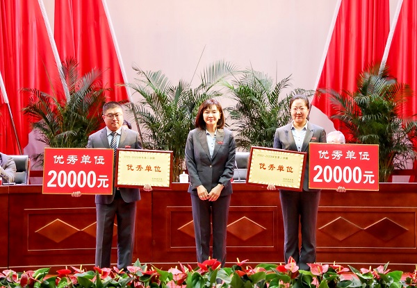 会上,党委副书记兼纪委书记裴晓涛宣读《关于表彰2022-2023学年第二学期优秀单位和优秀教职员工的决定》,与会校领导分别为优秀单位和优秀教职员工颁奖。