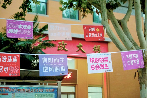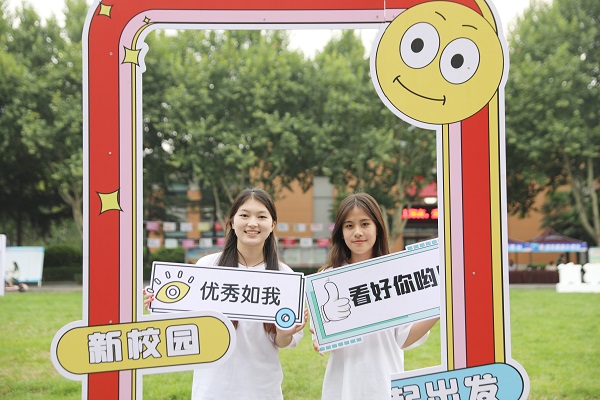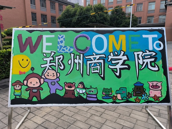飘扬的横幅、迎新背景墙、多彩的打卡立牌、新生签名墙,这些用心新颖的布置都在和新生说:“欢迎来到郑商大家庭!”