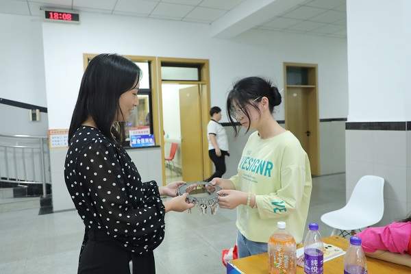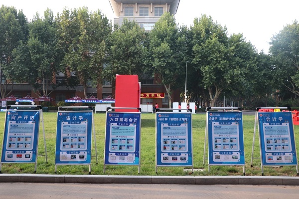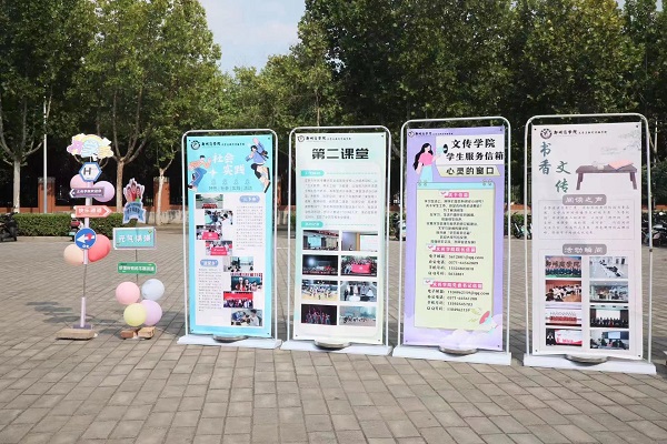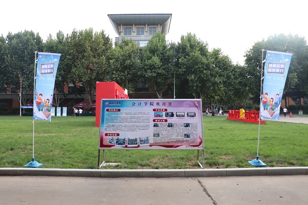 各学院都使出了“浑身解数”,利用各自专业优势,宣传展示学院基本情况、专业特色、教育教学成果和名师、优秀学子风采:工商学院的迎新专业展、“i人与e人”背景墙和打卡立牌紧跟潮流,散发着满满的青春气息;会计学院迎风招展的道旗、丰富详细的专业介绍等硬核物料展现了学院的专业风采。新生张书源浏览了校企合作展示,领取到了来自金贸学院的红包,里面有学院特色标识的文创产品,“每个红包都能开出不同的文创礼物,惊喜满满。”外语学院的留学项目介绍、考研就业风采展,尽展国际风采;信工学院的奖杯奖牌展,成果丰硕吸睛;艺术学院利用专业优势手绘迎新宣传展板,创意满满;文传学院详细介绍了专业情况和特色课外实践活动,拉近新生和校园的距离;建工学院展示了学生制作的优秀建筑模型,引人频频驻足;马院“精锐尽出”,老教授们现场为同学们答疑解惑;体育学院拿出专业百般武艺,动感单车、舞龙表演轮番上阵。“刚进校园我就听到了最炫民族风的歌声,被吸引到了动感单车表演现场,太酷了,想加入他们!”新生蔡宇乐说。家长秦先生带着女儿来报到,双胞胎妹妹们也跟着姐姐一起来感受大学氛围。“我刚带着孩子们转了一大圈,看到宣传牌上有专业和名师展示,介绍的很详细,了解了孩子将来要学啥,还有优秀学生、获奖奖杯,成果太多了,希望我女儿向优秀学习,全面提升自己。”