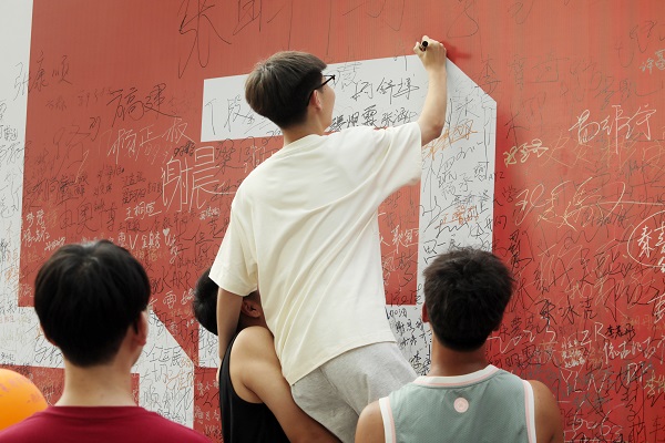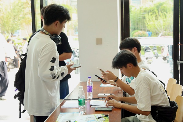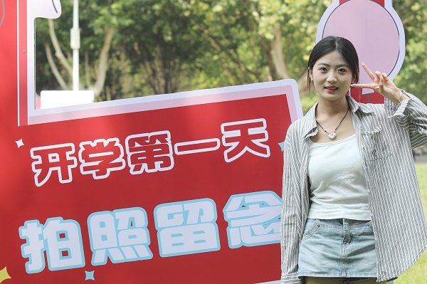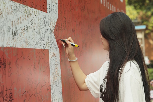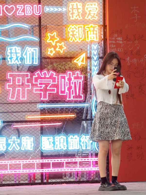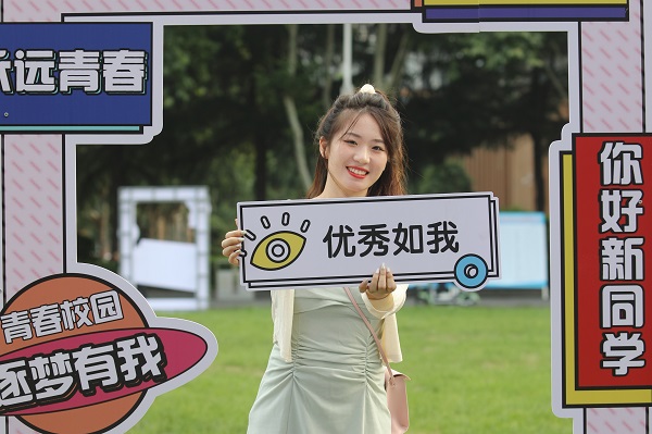 新生李雨洁在迎新墙上看到了自己的名字,和家人一起拍下了大学生涯的第一张合照,“我和家人看到自己名字的时候,真真切切感受到了学校的用心。”来自四川的新生彭雨佳顺利报到后,迅速和室友打成一片,她们不顾旅途的疲惫,急着逛校园“凑热闹”,找了找迎新墙上的名字、拍了拍写满祝语的“ins风”彩旗、看了看现场表演,“我性格比较外向,就喜欢这种活跃的氛围,今天参与感满分!”新生李晶雯看着签名墙上满墙的人名:“太热闹了,都有点签不下了,我就很机智地选了一支不同颜色的笔,美美写下了自己的名字。”签名墙旁边还专门设置了照片打印处,留下了许多明媚的笑脸。新生陈文清刚进校园就被右手边文艺感满满的旗子吸引住了:“我最喜欢‘好运藏在努力里’‘你逆光而来,配得上这世间所有的好’这两句,特意拍照发了朋友圈!”新生潘梦瑶也觉得学校迎新氛围特别好:“我参加了很多拍照打卡活动,还特意发了条抖音,作为我的第一条郑商动态。”