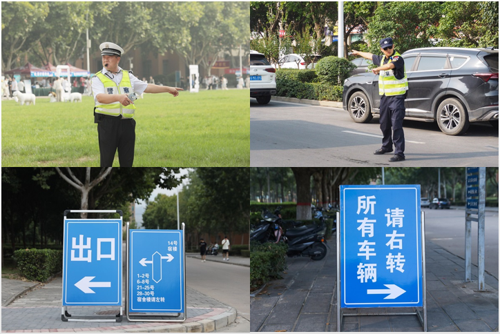 迎新期间,校园面向全部新生和家长开放,校内开辟专门区域供车辆停放,精心准备了路线指示牌,指引新生有序前往所在地点。据安保人员景建周介绍,为了保障好新生和家长有序入校,从早上7点到晚上11点,他和同事们轮班值守,“我们一方面协助交警做好校门口交通维护,一方面在校内成功大道、勤俭路等车辆较多的路口引导,提醒过往车辆不要逆行、规范停放,以免造成拥堵。”开放的校园让家长能够陪同新生进入校园,进一步了解学校的校园文化和育人氛围。