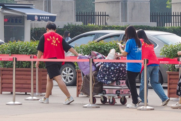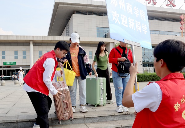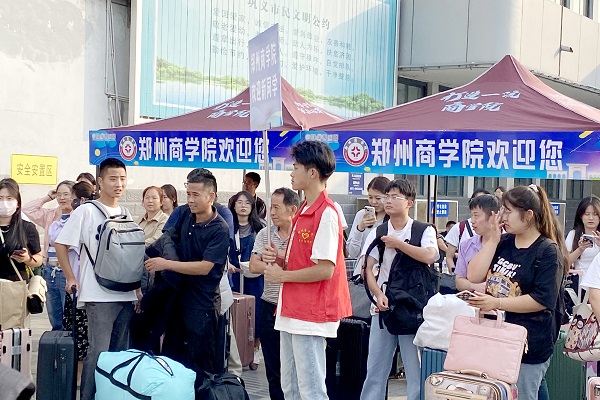 考虑到新生行李多、搬运难,学校在巩义高铁站、火车站均设置了迎新接待处,从早上7点到晚上7点,不间断派发迎新专线。据接站负责人卢旭、韩海洋介绍,今年学校在车站迎新点组织了50余名志愿者,引导新生有序乘车、帮他们安置行李、介绍回校路线,确保新生顺利“到家”。