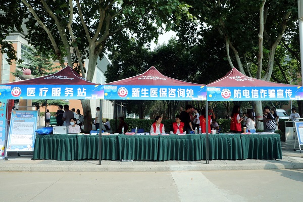 学校还在校园内设置了综合服务、绿色通道、招办咨询、医疗服务、新生医保咨询、心理健康教育咨询、防电信诈骗宣传、失物招领等迎新站点,开展资助、防诈、医疗、心理健康咨询等系列暖心服务项目,给新生最强保障。