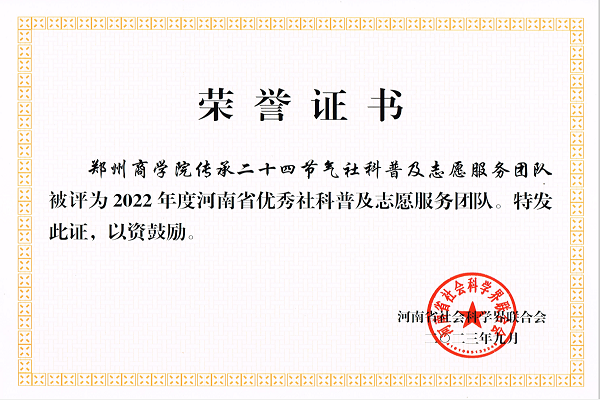 荣获“2022年度河南省优秀社科普及志愿服务团队”