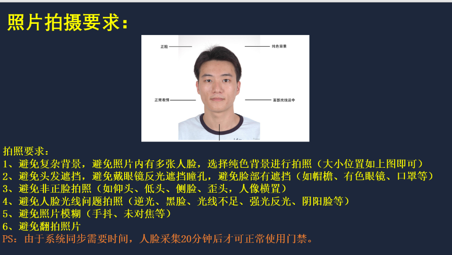 为方便我校师生出入校园与学生宿舍等场所,我校采用人脸识别方式通行。因为人脸识别算法会定期升级,部分师生之前上传的人脸照片匹配度、清晰度、识别度不符合系统要求的照片规范,会导致出入校门和宿舍时显示无权限。如有类似情况发生,需按照要求上传新的人脸照片,具体操作流程如下: