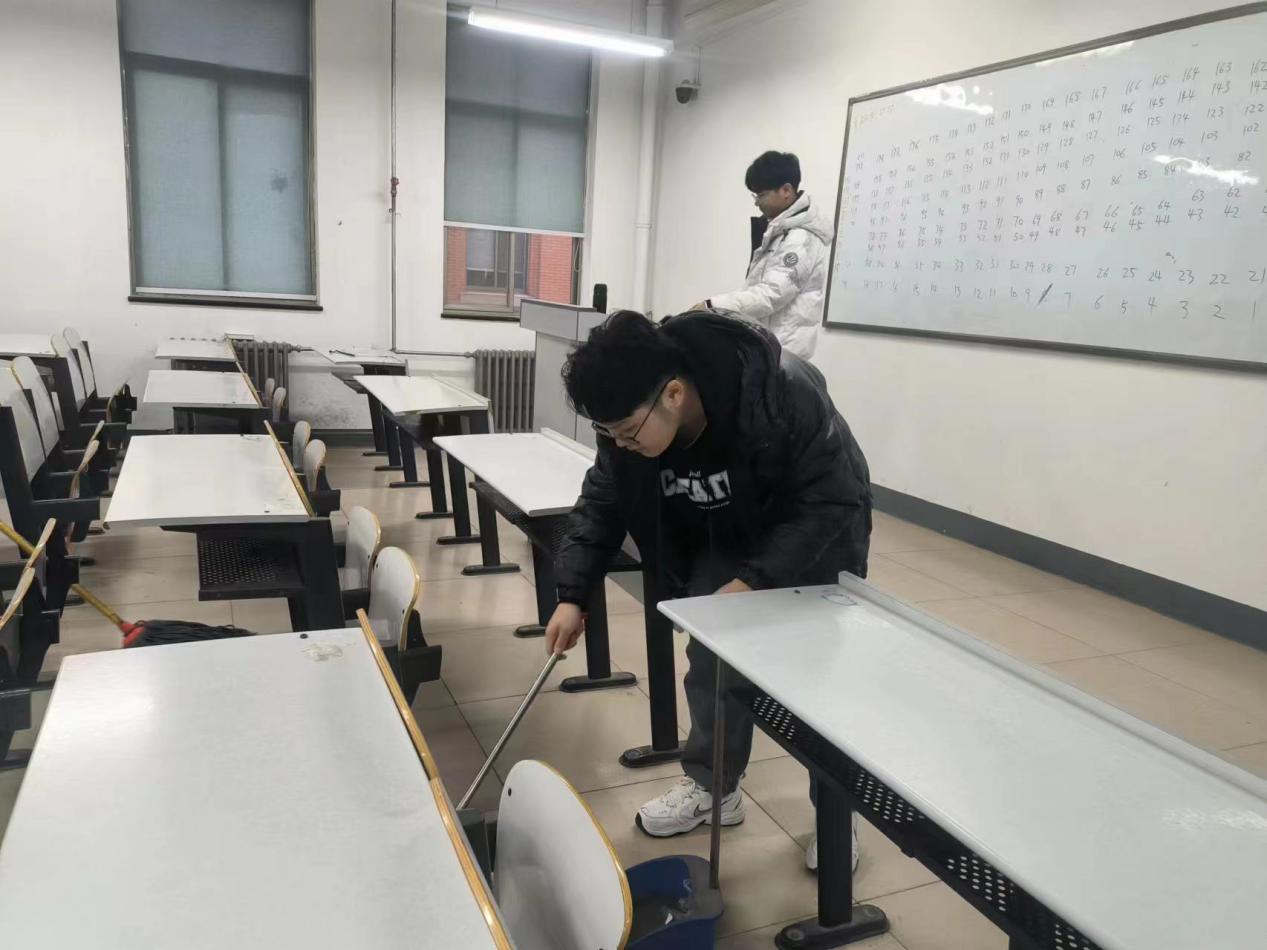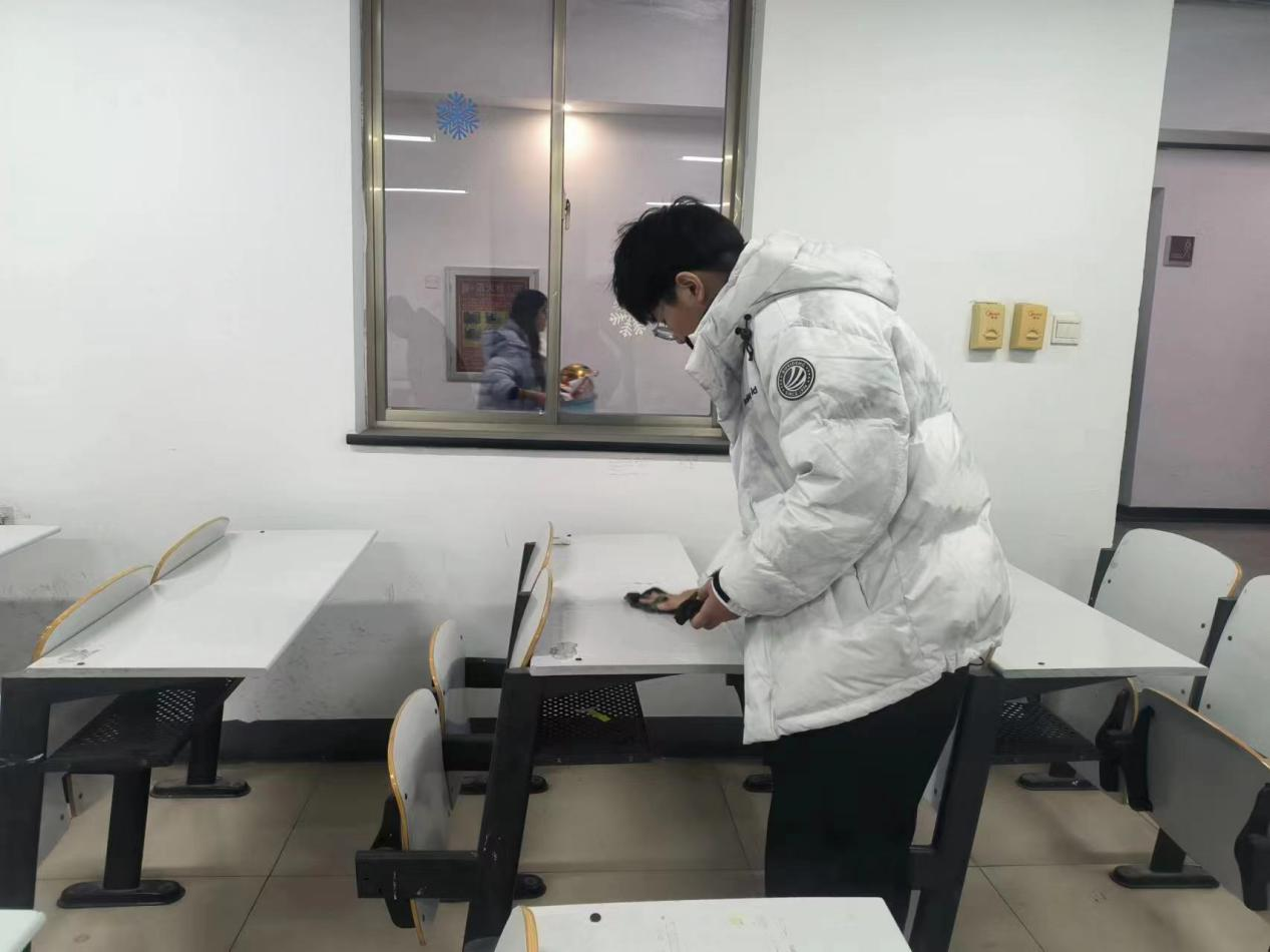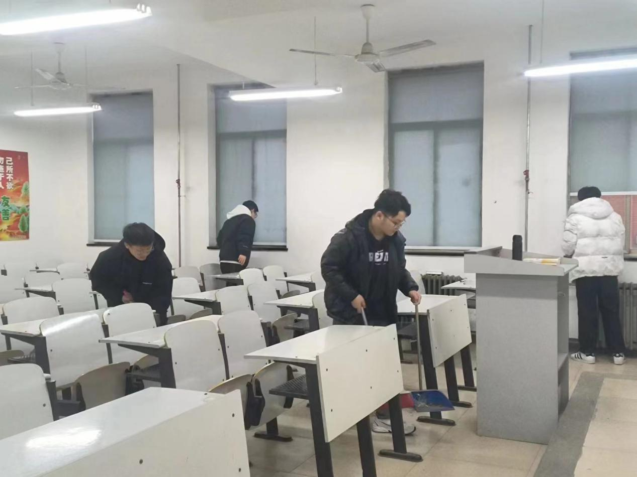 打扫过程中,我院学子脸上都写满了认真,不放过班级内的任何一个劳动区域,如黑板的擦拭、地板的清扫、窗户的清理以及清理教室内与考试无关的物品等等。
