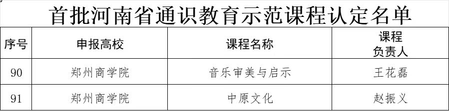 近日,河南省教育厅发布《关于公布首批河南省通识教育示范课程认定名单的通知》,我校申报的《中原文化》《音乐审美与启示》两门通识拓展课程均获批立项“首批河南省通识教育示范课程”。