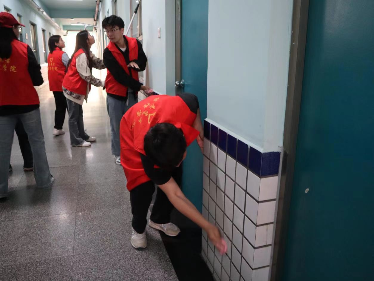 为持续贯彻创办人办学理念,积极开展劳动育人工程,4月11日中午,我院组织开展“喜迎校庆、整洁卫生、你我同行”教学楼宇卫生大清扫活动,劳动教育负责老师张勤英、生活部部长程晓亮及第18期预备党员代表参加此次活动。