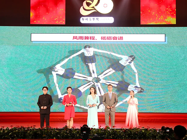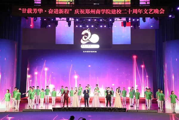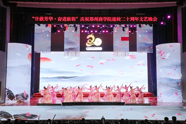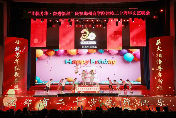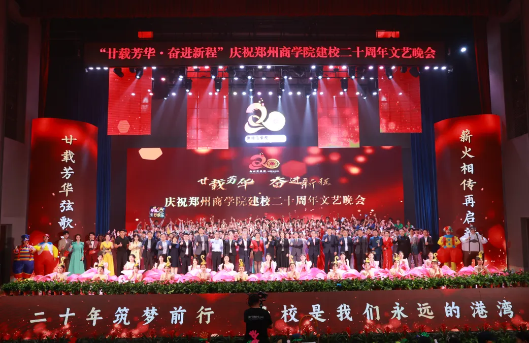 廿载芳华、弦歌奋进,薪火相传、再启新程。4月15日晚,“廿载芳华·奋进新程”——庆祝建校二十周年文艺晚会在成功大会堂举行。现场灯光璀璨、喜气洋洋。董事长王育华、执行董事陈坚德、党委书记吴建军、校长吴泽强等校领导,各界嘉宾、校友、兄弟院校领导与郑商师生共襄盛会。
