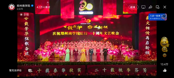 与此同时,校庆晚会还通过官方视频号进行现场直播,海内外全体郑商人、社会各界云端同步观看,共祝郑商生日快乐。