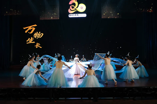 舞蹈《灿若》婀娜多姿、若仙若灵,舞之韵尽显郑商钟灵毓秀、廿载芳华。视频《向未来 正青春》,展示了郑商学子怀揣着梦想,带着希望从五湖四海相聚于此,共奏青春年华。街舞、拉丁《新闪耀》节奏欢快灵动,以整齐利落的动作、精彩酷炫的舞姿点燃全场,让大家领略到郑商校园里多元的青春风貌。歌舞《梦在春天如愿》宛如阳光洒满大地,温暖而明亮,时而欢快跳跃、充满激情,时而轻柔浪漫、令人陶醉,许下了一个共同的春天梦,愿郑商在新时代的春天里拔节升高。在歌舞《再次相约二十年》悠扬的旋律中,20周年校庆晚会走向尾声,聚是一团火,散是满天星,全体郑商人将青春的诗篇书写在神州大地上,在不同的领域发光发热,期待下一个十年、下一个二十年再相聚。
