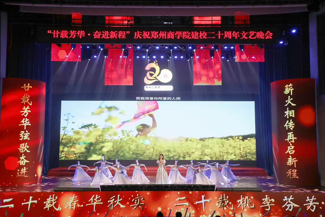晚会以“廿载芳华·奋进新程”为主题, 由“源起-奋进-启新”三个篇章组成,生动展现20年来一代代郑商人走出的坚守之路、育人之路、传承之路、发展之路。
