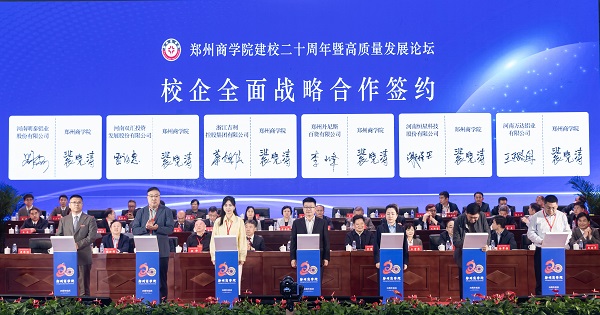 为进一步加强产教融合、科教融汇,我校与浙江吉利控股集团有限公司、郑州丹尼斯百货有限公司、河南双汇投资发展股份有限公司、河南恒星科技股份有限公司、河南明泰铝业股份有限公司、河南万达铝业有限公司进行校企全面战略合作签约。