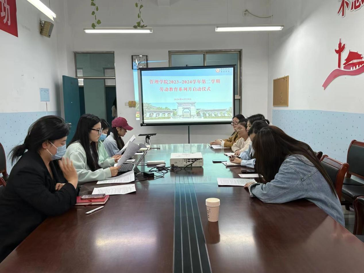 为弘扬劳动精神,增强劳动意识,凝聚奋进力量,引导广大学生学习、崇尚劳动教育,热爱劳动,尊重劳动,推动劳动教育高质量发展,4月29日,我院在2号教学楼一楼会议室召开2023-2024学年第二学期劳动教育系列月启动仪式,我院团委书记魏瑶及辅导员参加启动仪式。