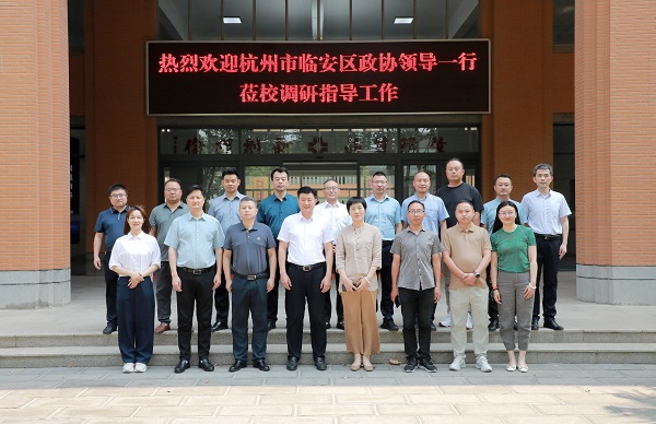 6月5日,杭州市临安区政协副主席张敏一行12人莅临我校调研交流。校长吴泽强接待张敏副主席一行,并在行政楼第一会议室组织召开座谈会。校办、新闻中心、招生就业处和金贸学院、外语学院、艺术学院、建工学院等部门负责人参加会议。