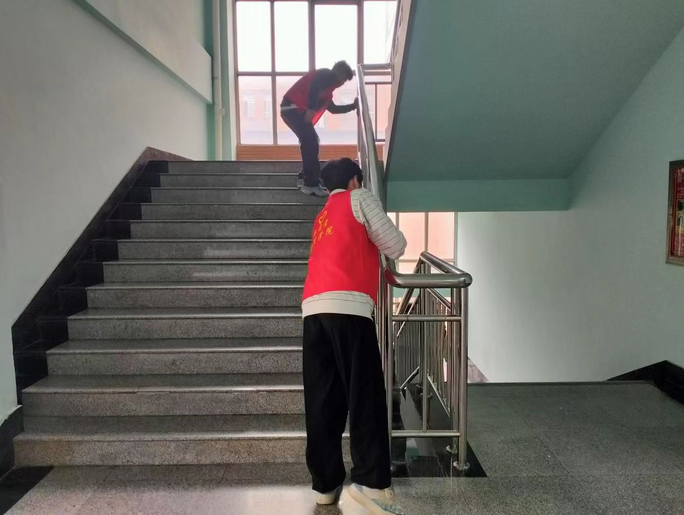 活动开始前,遆瑞娇老师组织开展会议对此次劳动清扫活动进行了简单介绍,并分配好相关工作,随即同学们对2号教学楼展开了卫生清扫。