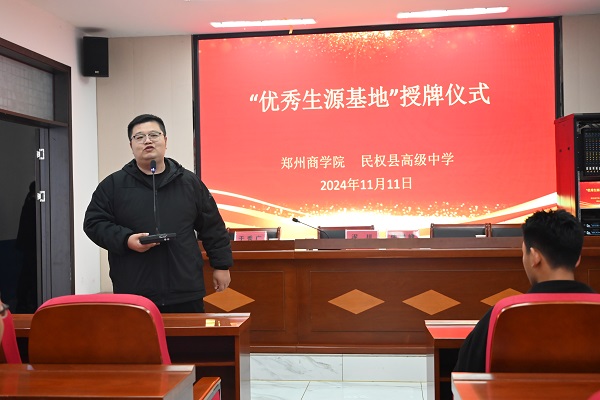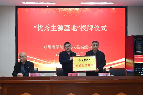为应对新高考改革带来的机遇和挑战,搭建重点高中与我校沟通的桥梁,切实提高我校生源质量,11月11日,校长助理兼招生就业处处长泥川,我校优秀博士校友、中原工学院硕士生导师刘红涛副教授等一行赴民权县高级中学参加优秀生源基地授牌仪式,并签署优秀生源基地建设合作协议书。