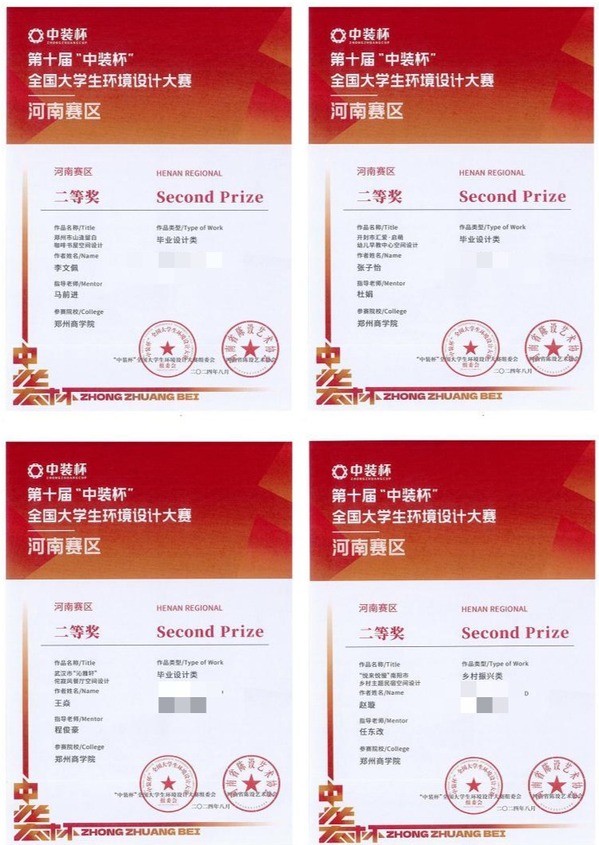 近日,第十届“中装杯”全国大学生环境设计大赛评审结果公布,我校艺术学院师生在众多杰出的参赛者中斩获优异成绩,获得省级二等奖4项、三等奖10项、优秀组织机构奖1项。