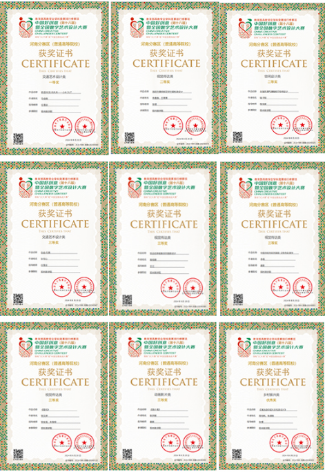 近日,第18届中国好创意暨全国数字艺术设计大赛国赛评审结果出炉,经过校赛选拔、省赛评审、国赛终审等多个环节的激烈角逐,我校学生凭借扎实的专业水平和出色的创新能力,在众多优秀参赛者中脱颖而出,在河南省赛中荣获一等奖1项、二等奖2项、三等奖5项、优秀奖1项;在全国总决赛中荣获二等奖1项、三等奖6项。