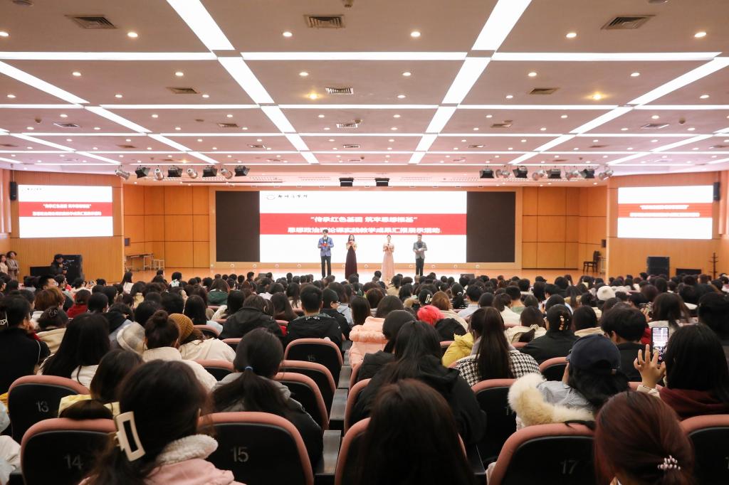 为深入学习宣传贯彻党的二十大和党的二十届三中全会精神,贯彻落实习近平总书记关于学校思政课建设的重要讲话和指示精神,聚焦立德树人根本任务,着力提升思政课的针对性和感染力,12月4日晚,我校在图书馆一楼报告厅举办“传承红色基因 筑牢思想根基”思想政治理论课实践教学成果汇报展示活动。校党委书记吴建军、校长吴泽强、董事长助理陈宗纬和相关部门主管、各学院党委书记、马院全体教师、各学院学生代表以及巩义市中小学思政课教师代表共600余人参加此次活动。