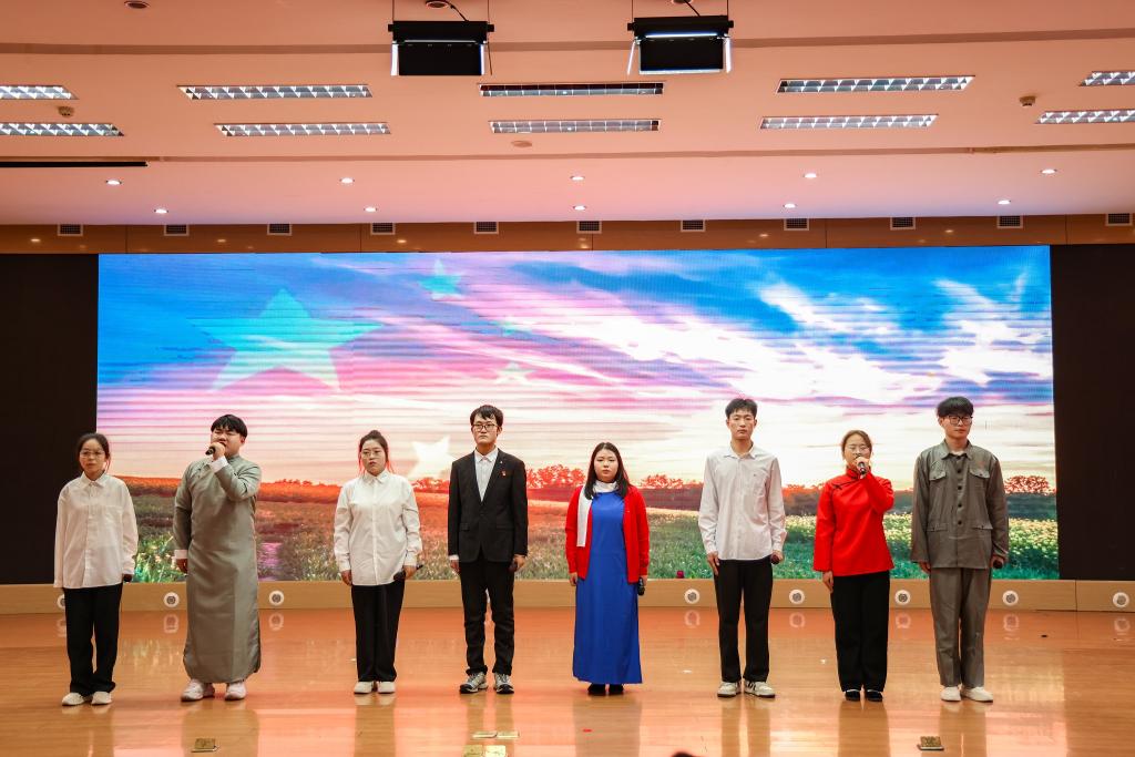 为提升思想政治理论课教学实效,我校马院以“大思政课”建设为抓手,积极探索思想政治理论课实践教学模式,形成了具有郑商特色的“三位一体”大思政育人品牌。本次活动以马院思政课“课前十分钟,学生上讲台”课堂实践活动成果和“行走的课堂”校外实践教学活动成果为依托,选出12个能有效呈现马院思想政治理论课实践教学成果的节目进行集中展示,呈现了一堂兼具思想高度、情感温度、艺术浓度和时代精神的思政大餐。