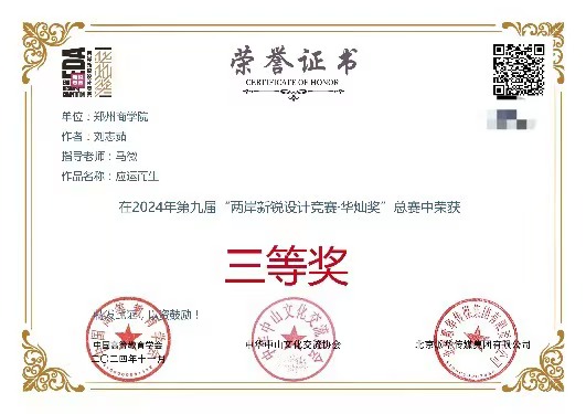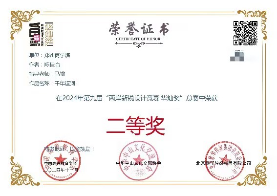 近日,由中国高等教育学会、中华中山文化交流协会和北京歌华传媒集团有限责任公司共同主办的2024第九届两岸新锐设计竞赛·华灿奖获奖名单正式揭晓,我校学子荣获全国二等奖1项、三等奖2项。
