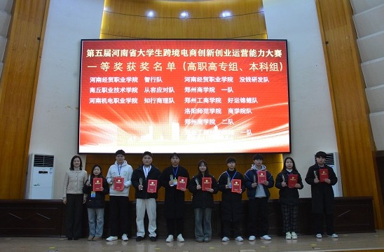 12月8日,由河南省高等教育学会主办,郑州工程技术学院承办的第五届河南省大学生跨境电商创新创业运营能力大赛顺利结束。我校金贸学院2022级国际经济与贸易专业和跨境电子商务专业8名学生组成的2支队伍均获得团体一等奖;李亚敏、张莉、范彦松和徐畅4位指导教师获得“优秀指导教师”荣誉称号。