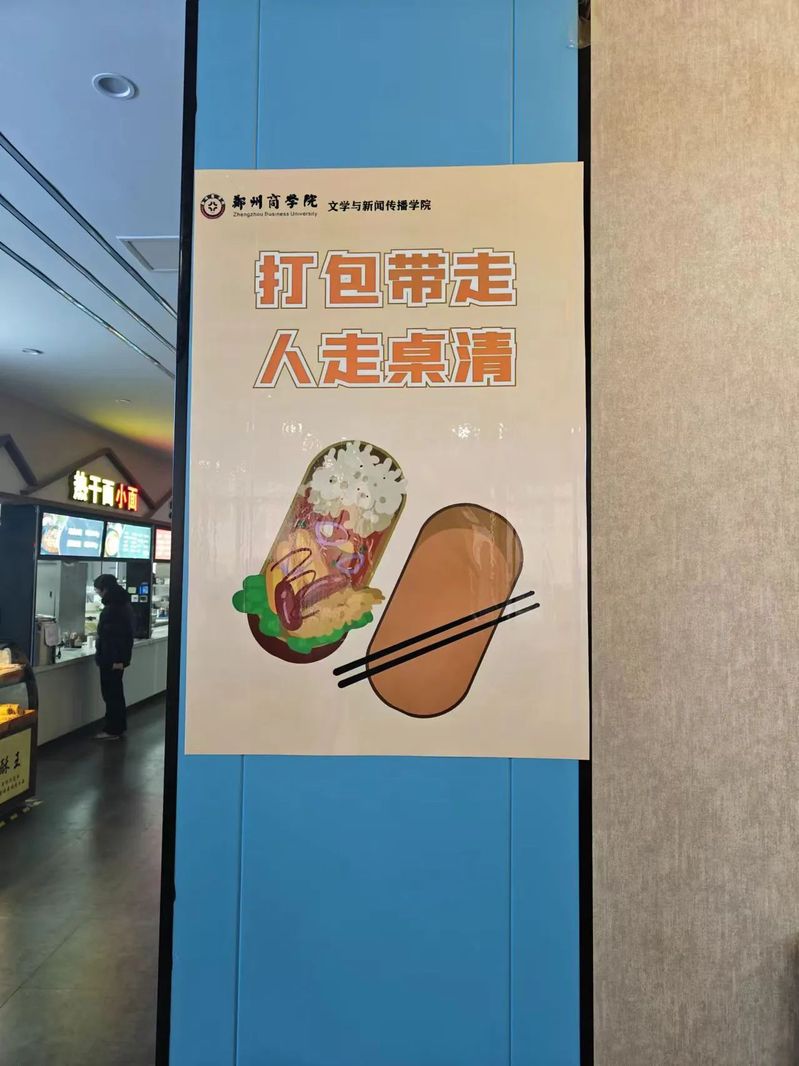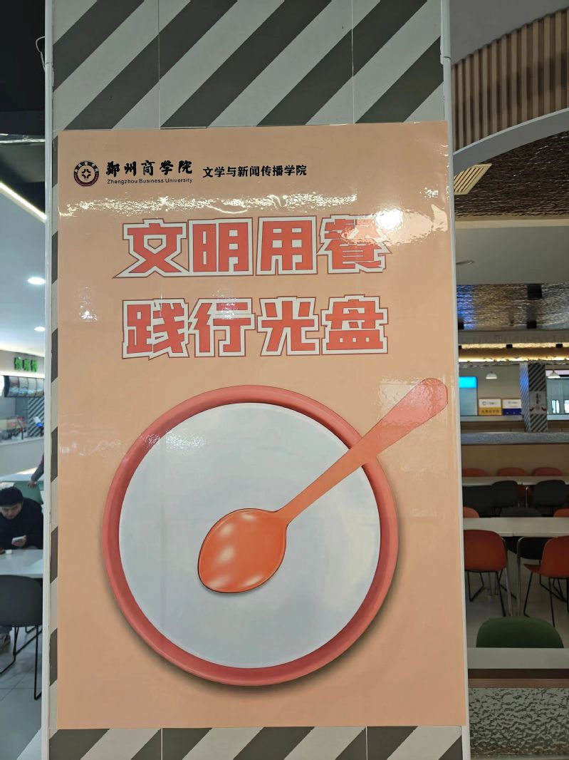 为大力弘扬中华民族勤俭节约的优良传统,营造节约光荣,浪费可耻的餐厅氛围。文传学院加大厉行勤俭节约的传统美德普及力度、反对餐饮浪费的教育力度。因此,文传学院艺术团特开展“爱惜粮食,文明用餐”礼仪专项活动。本次活动通过在餐厅张贴宣传海报的形式号召全院同学向餐饮浪费行为说“不”。