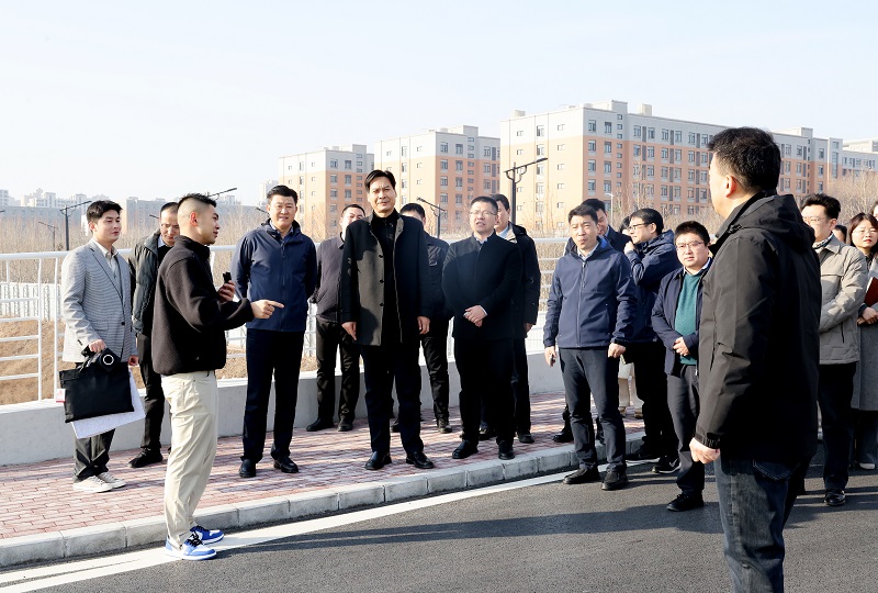 考察过程中,董事长助理陈宗纬现场对连接紫荆东校区和三彩校区的兴海桥基本情况、建造功能、周边设施及三彩校区图书馆、学生活动中心、实训中心、景观公园等规划布局与建设工期进行了详细讲解。