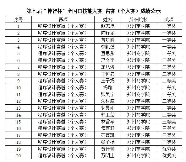 近日,第七届传智杯全国IT技能大赛全省决赛成绩揭晓,我校学子凭借扎实的专业功底和创新实践能力,斩获一等奖7项、二等奖9项、三等奖7项。